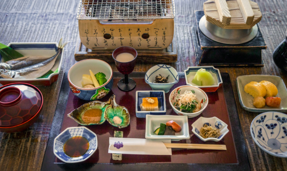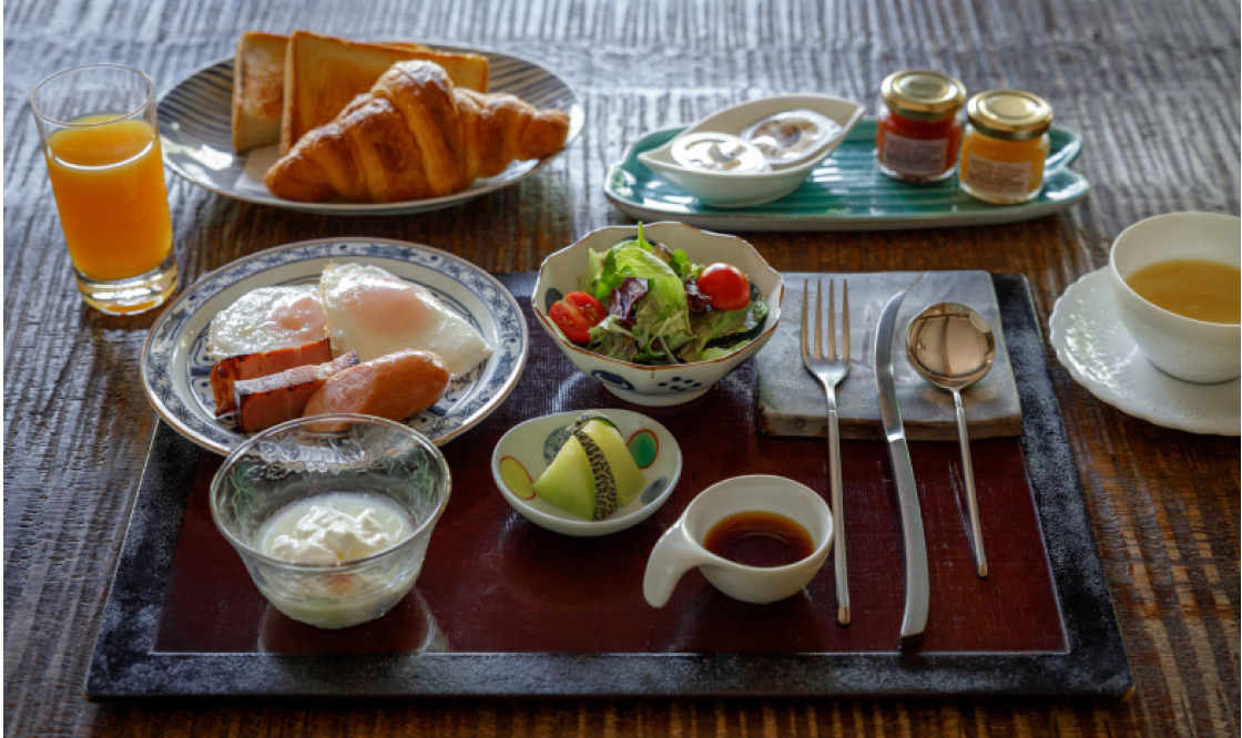 At Ryokan Kurashiki, mornings start off quietly in a cozy space where the charms of traditional Japan meet modern comforts. Guests awaken to the aroma of breakfast served at the inn's restaurant, choosing between traditional Japanese fare of freshly made dashimaki omelets, colorful side dishes, and fluffy rice cooked in an earthenware pot, or more familiar Western-style dishes. This leisurely morning meal invites relaxing contemplation before a day out on the town in historic Kurashiki.