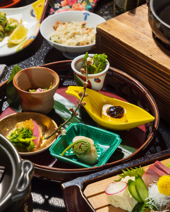 Check in to Matsuzakaya Honten, a legendary inn that has welcomed poets and samurai for over three centuries. Relax in rooms that serve as a portal to Japan's bygone eras, and enjoy a refreshing soak in the rare gensen kakenagashi (continuously flowing) hot spring waters, famed for their mineral-rich benefits. For dinner, enjoy "Shukuba Kaiseki" at Restaurant En—a multi-course banquet inspired by Hakone’s history as a post town, featuring the finest seasonal ingredients.