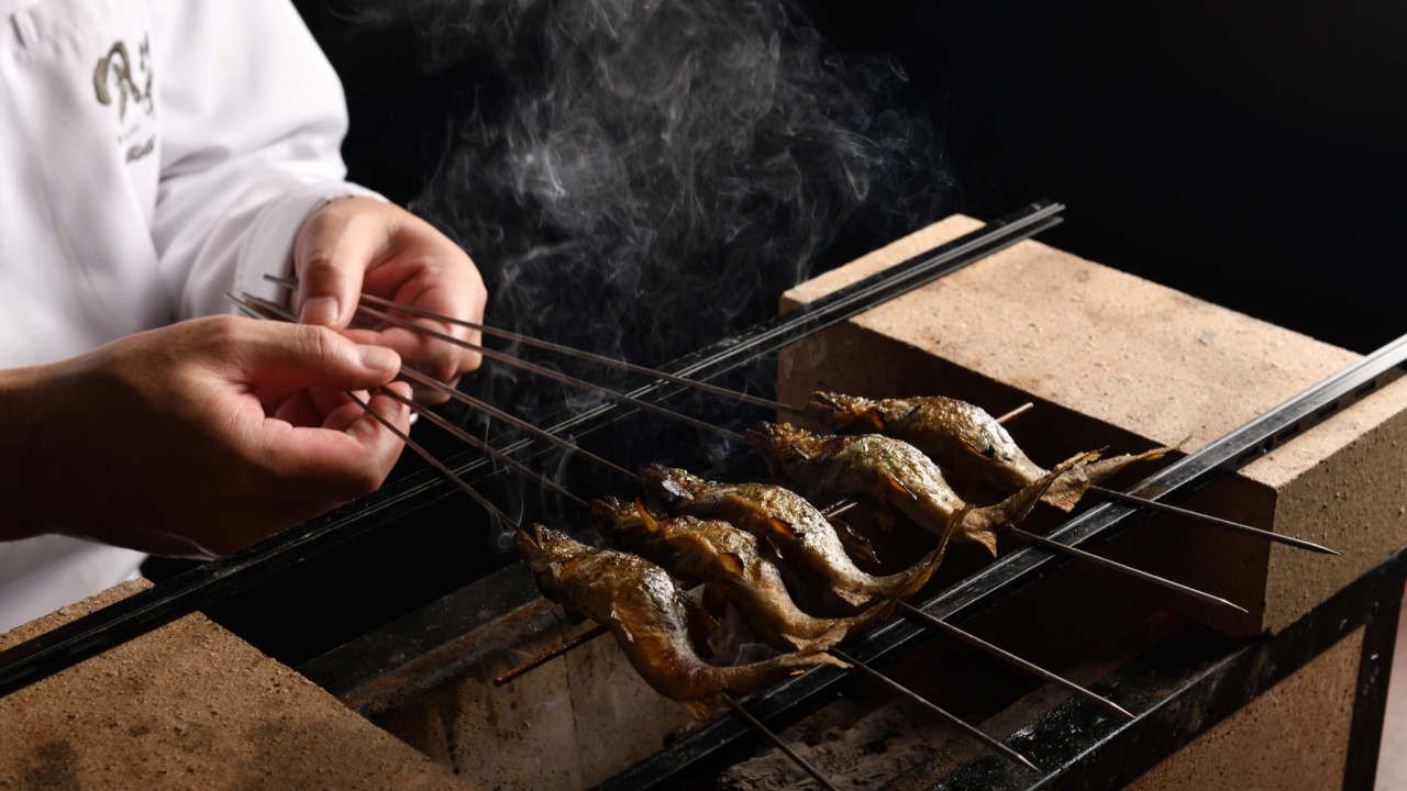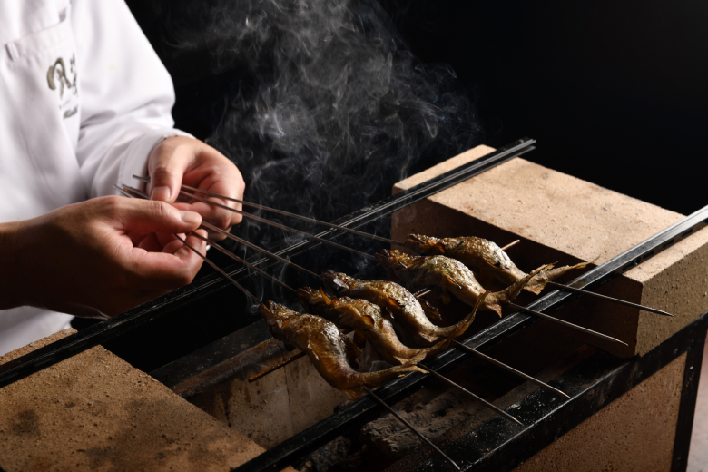 Dinner at Fushi is an event in and of itself. As the sole guests at this private villa, you will be treated to an exhibition of preparation and cooking by the in-house chef, a master with over 30 years of experience. Watch as he transforms fresh local seasonal ingredients into the meticulously crafted dishes of a kaiseki-style meal, including delicate ayu sweetfish grilled over an open flame on the room’s riverside hearth. As a private experience, this meal can be tailored to a wide variety of dietary needs.