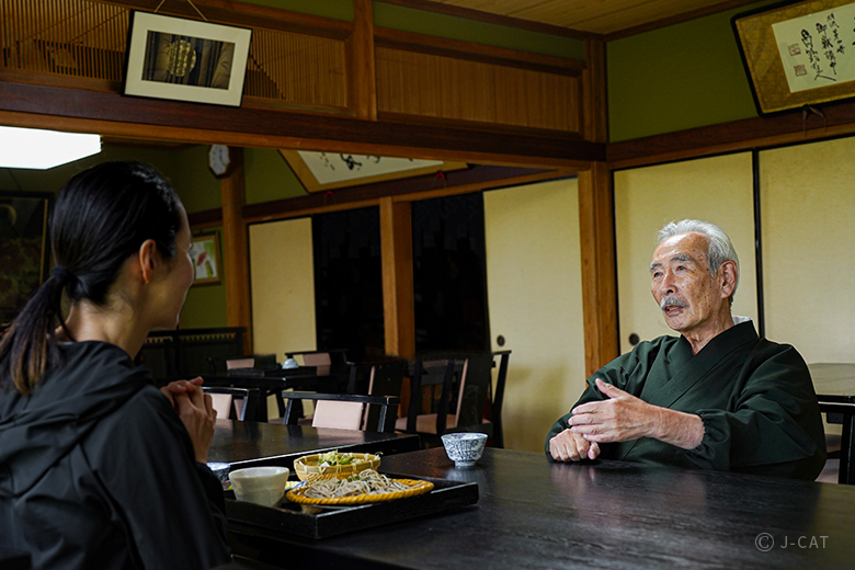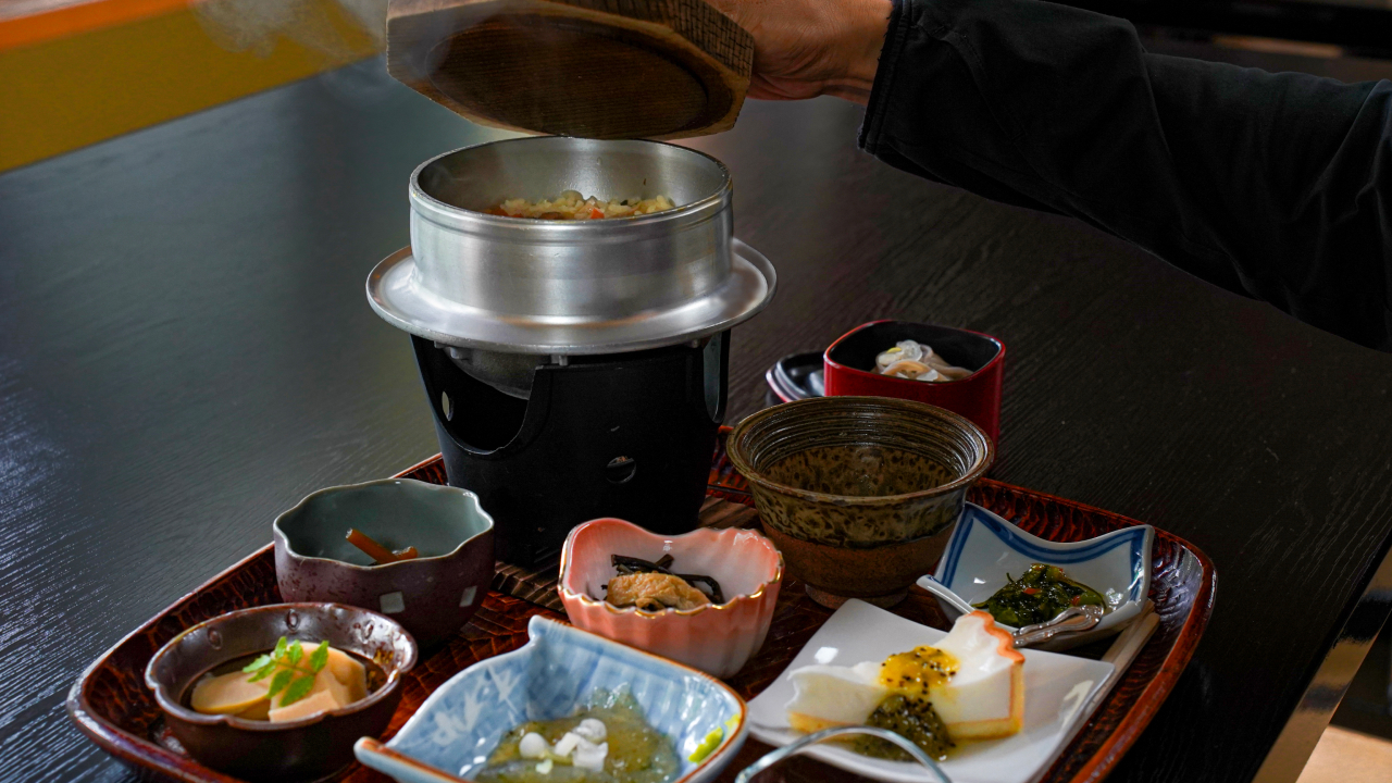 After you finish the Cultural Course or Shugendo Hiking Course, it will be time for lunch at one of the mountaintop shukubo that provide accommodation to shrine visitors. Your meal will include a healthy balance of homegrown and wild vegetables, as well as your choice of soba noodles or kamameshi (a dish made with various ingredients steamed in a pot with rice). A priest known as an oshi who runs the shukubo will join you for a conversation about the history and traditions of the shrine.