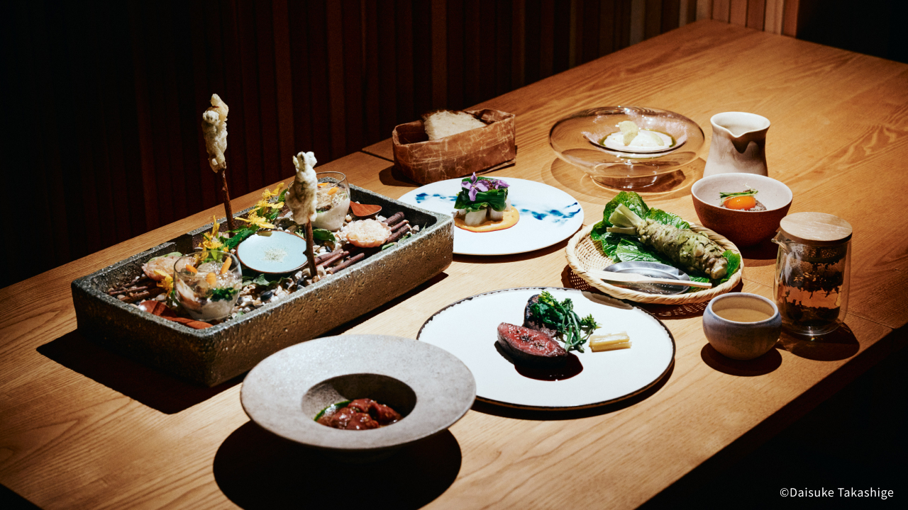Satologue started out as a restaurant in 2024, providing fine dining experiences for visitors from the very beginning. The two chefs at Satologue are passionate about crafting their meals using the finest local ingredients, often grown in their very own gardens or sourced from producers nearby. Using French cooking methods, the chefs will prepare a dinner for you that is a feast for the senses, celebrating the extraordinary productivity of the surrounding lands and their personal affinity to the region. As a special Wabunka exclusive, you can also enjoy a local sake pairing* specially chosen to complement your meal.