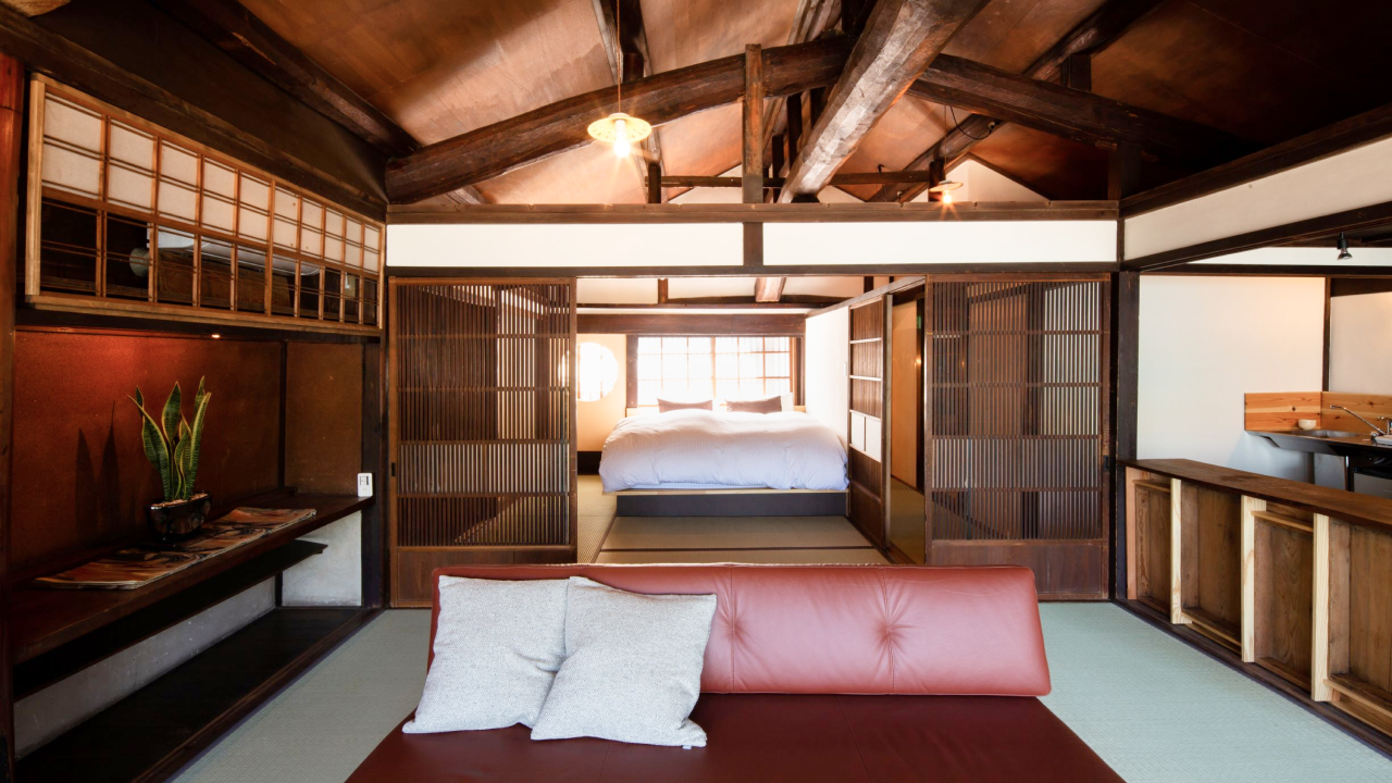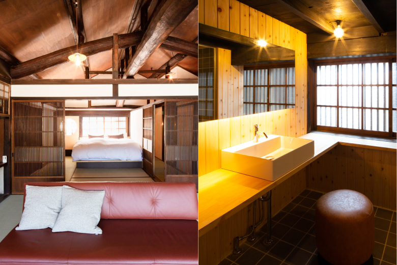 The interior of Kangetsu-an Shintoyo has been meticulously renovated to ensure that guests can relax in style and comfort. Both spacious bedrooms retain a traditional Japanese aesthetic while providing king-size and queen-size Western-style beds so that you can get a comfortable night’s sleep. Modern Western-style bedding is also provided.
