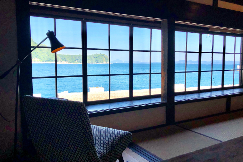 The building itself retains much of its original design, including wooden pillars and beams as well as lattice doors typical of the region’s traditional architecture. Viewed through the antique glass of the inn’s windows, the islands of the Seto Inland Sea and the blue of water and sky seem to waver and bend depending on the light. You may wonder for a moment whether the view is real or the product of an artist’s paintbrush.