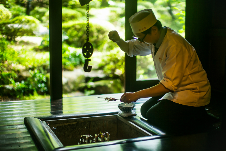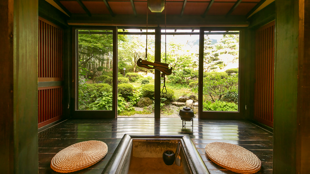 The star of the course dinner is river fish grilled right at the irori sunken charcoal hearth in your room, done just as it has been since the inn's founding over a century and a half ago. Soak up the fragrance, delight in the low crackling roar of the fire, and warm yourself in a rustic and timeless luxury that’s hard to come by elsewhere.